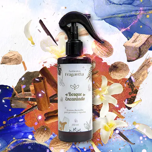 + Costo de envíoBosque Encantado by Fragantta es un ambiente de aroma mágico, una mezcla entre madera y dulce, sus notas olfativas son coco, vainilla y ámbar , tiene un tono oriental que enamora.