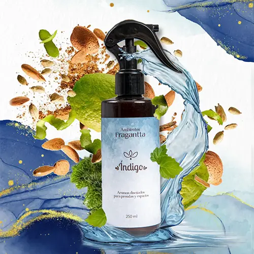 + Costo de envíoÍndigo by Fragantta es un ambiente de aroma cítrico, fresco y varonil, ideal para las personas que aman el olor a limpio, muchos lo usan para las sábanas, toallas y para perfumar su carro. Sus notas olfativas son: musgo de roble, bergamota, brisa de mar y hojas verdes.
